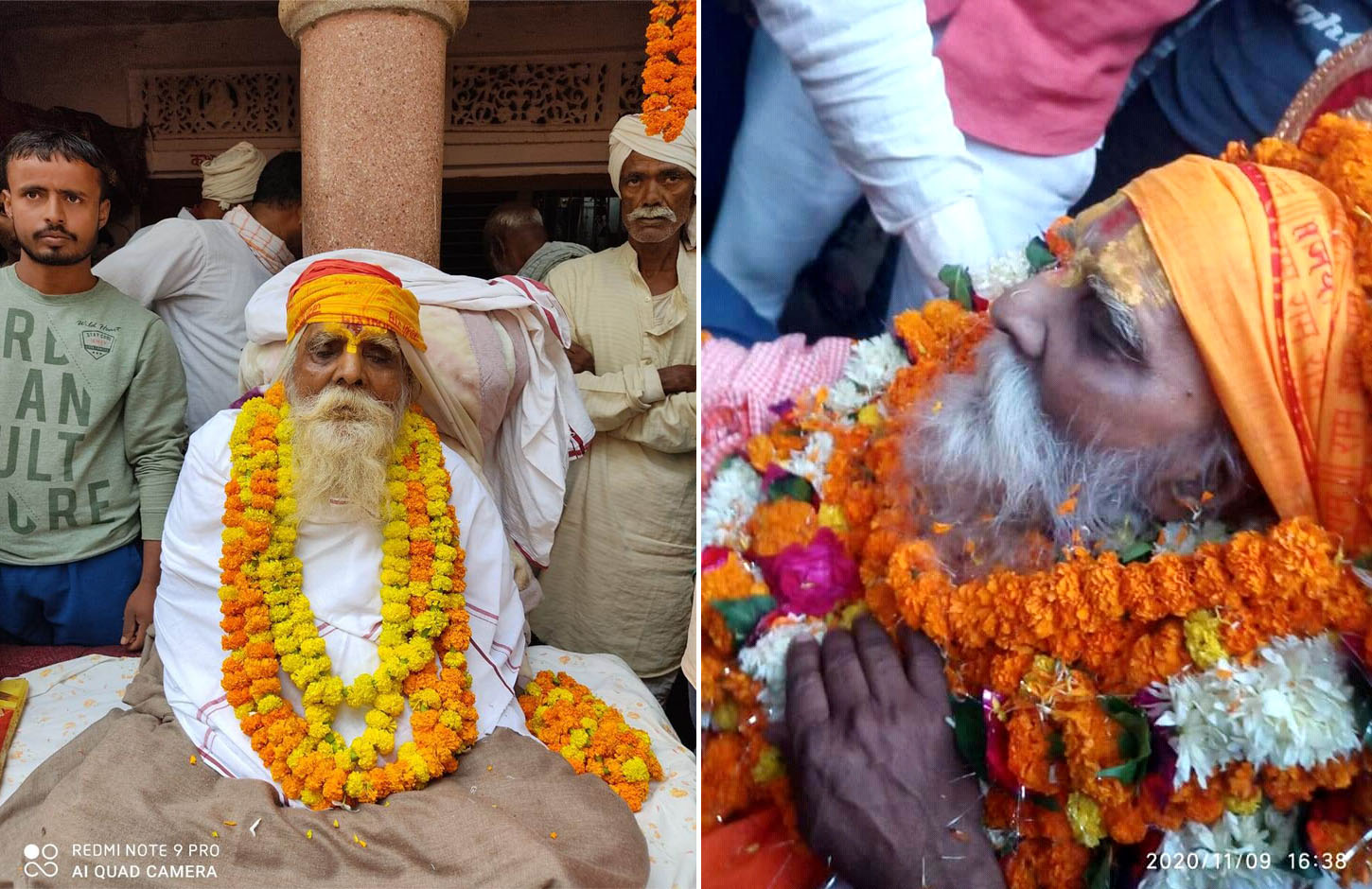 श्री श्री 1008 रामकिंकर दास मौनी महाराज जी की ब्रह्मलीन अवस्था के पश्चात की दुर्लभ एवं भावनात्मक छवियाँ।